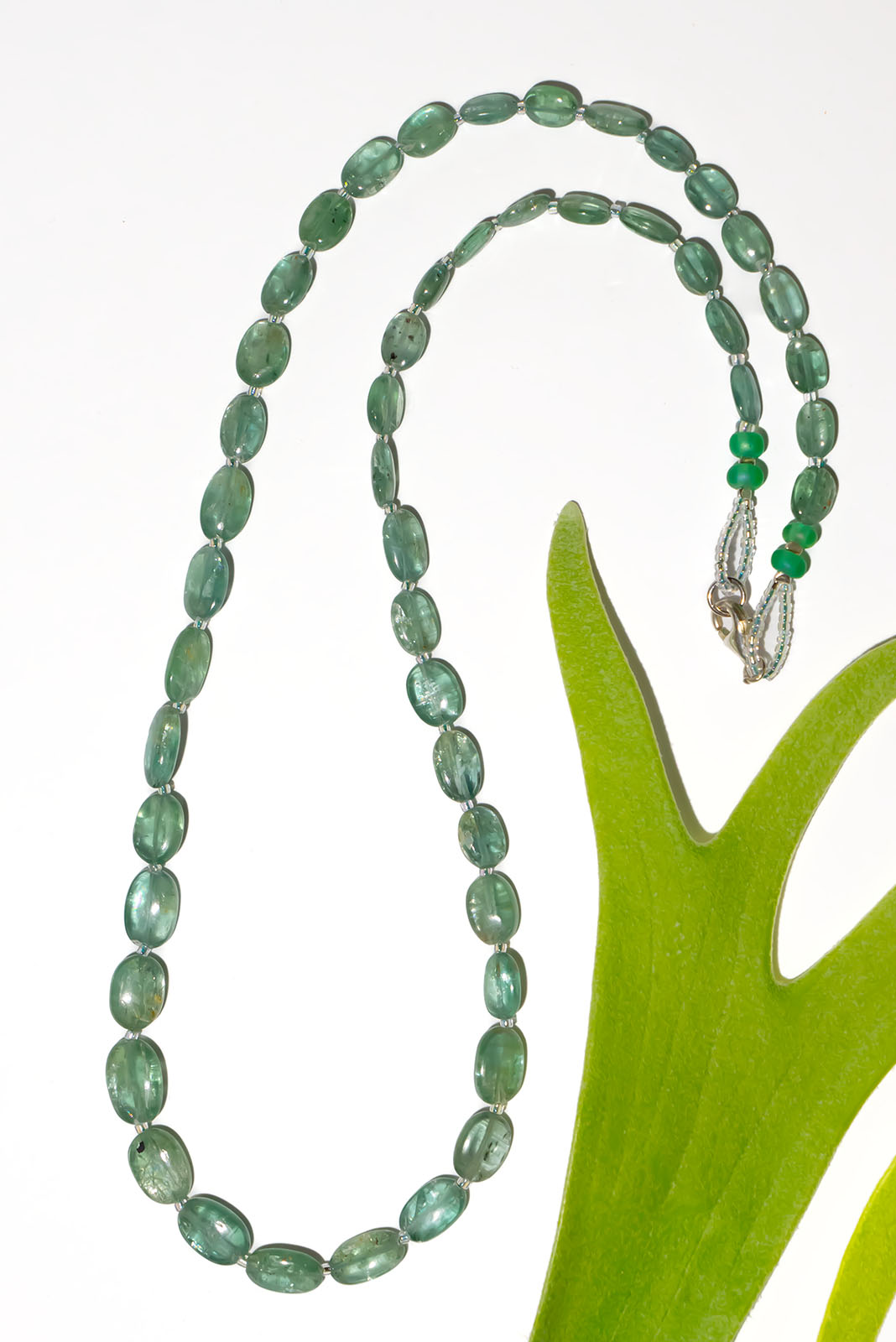 - Pale green Kyanite graduated oval beads which are highly polished to a lustrous shine.