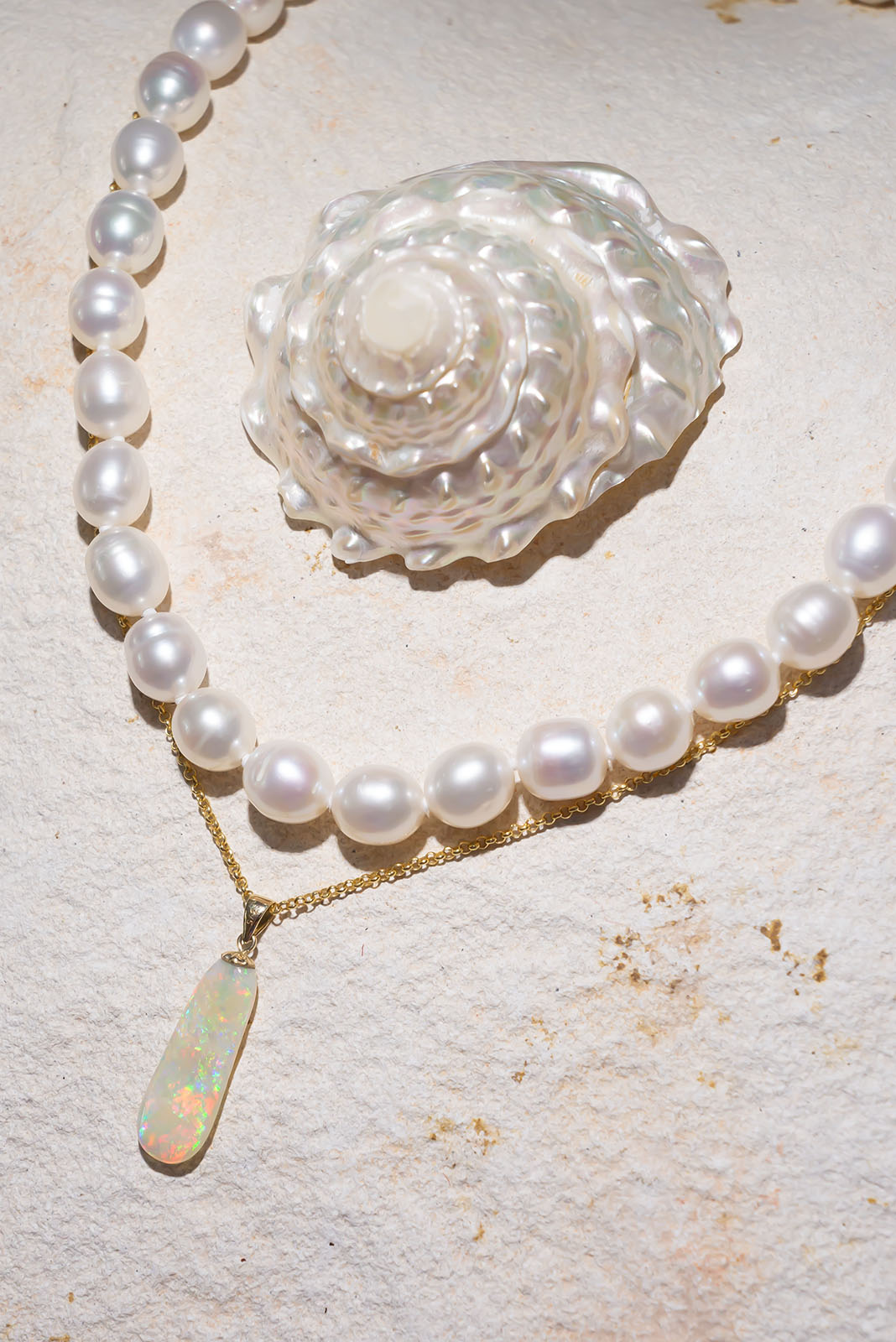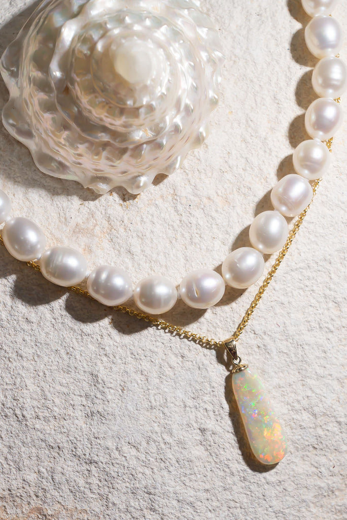 A true treasure our beautiful Necklace Pearl Dreams of the Sea is a stunning piece. Keep it chic and wear on it's own or create an elevated luxury look and pair with a gorgeous Australian white opal.