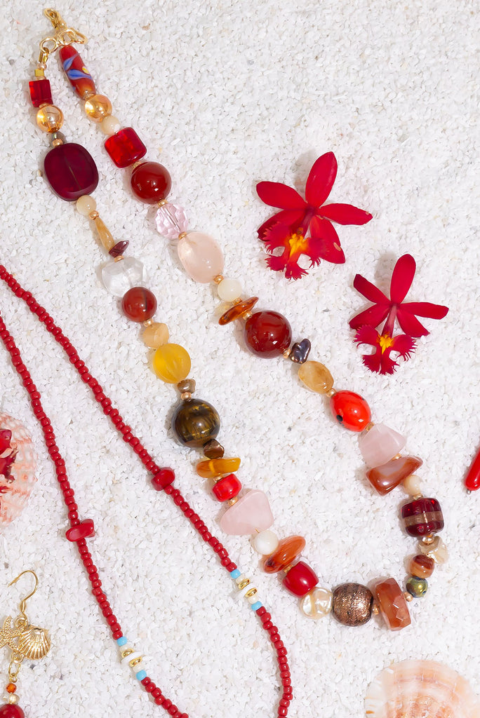 Necklace Stones and Beads Red