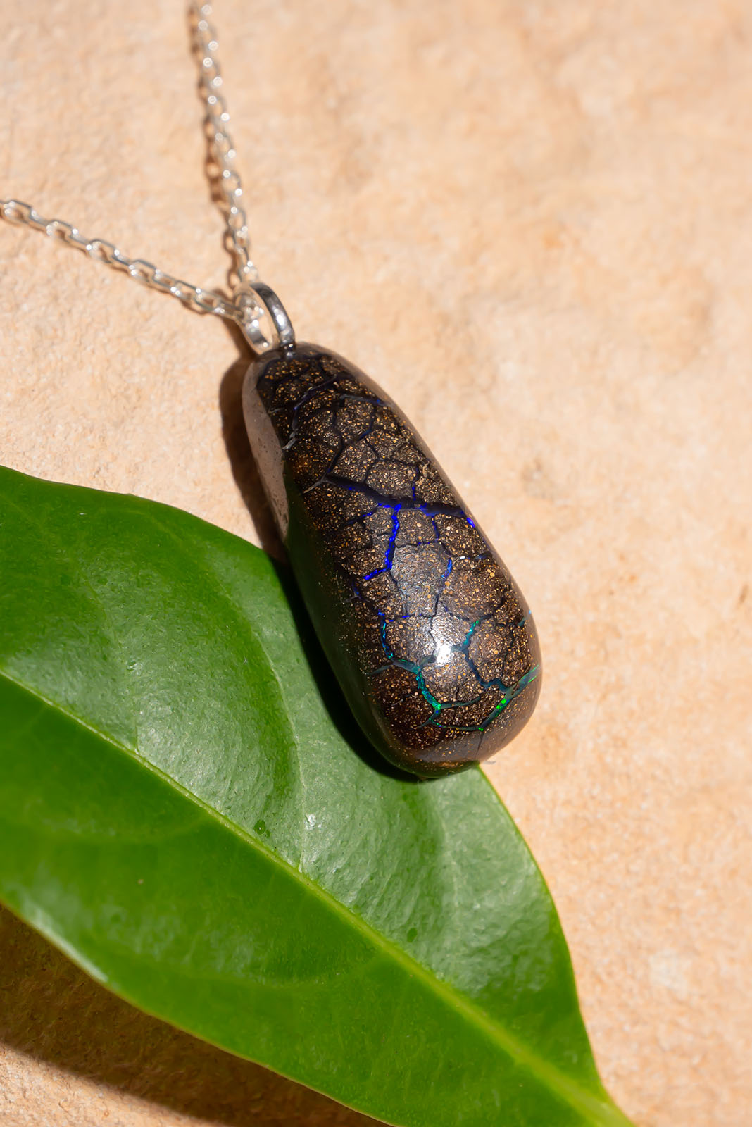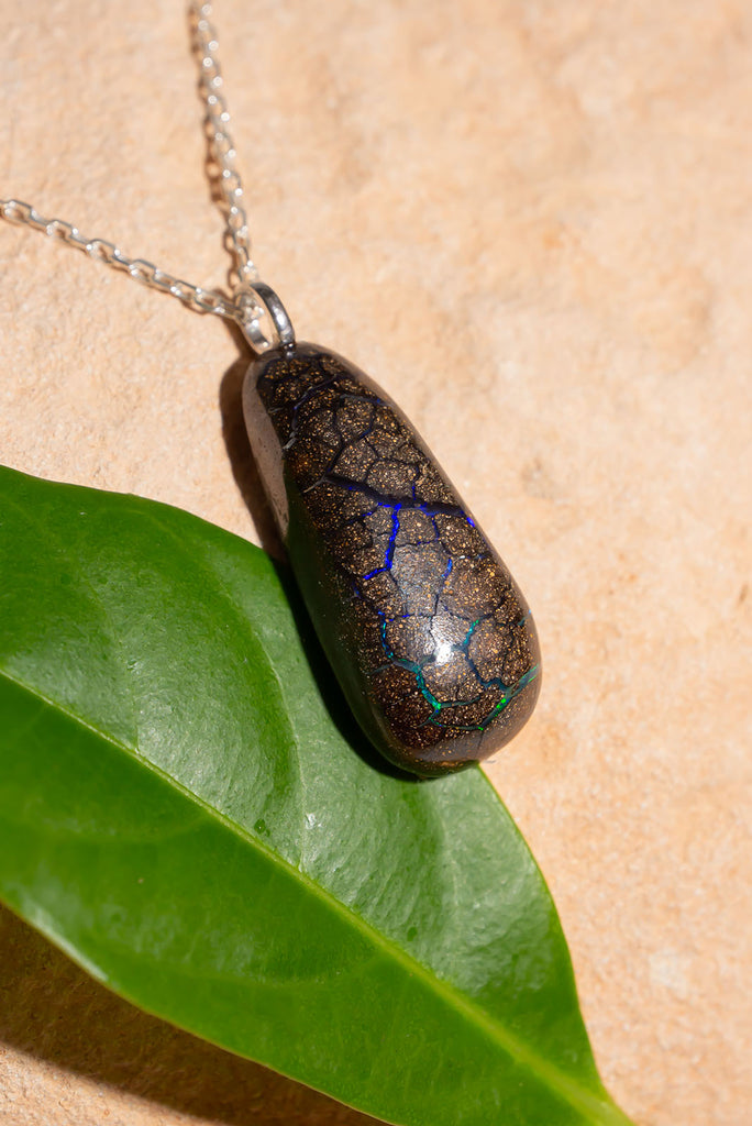 Australian Matrix Opal pendants which has rivulets of blue crisscrossing the surface. Intriguing and secretive stones.
