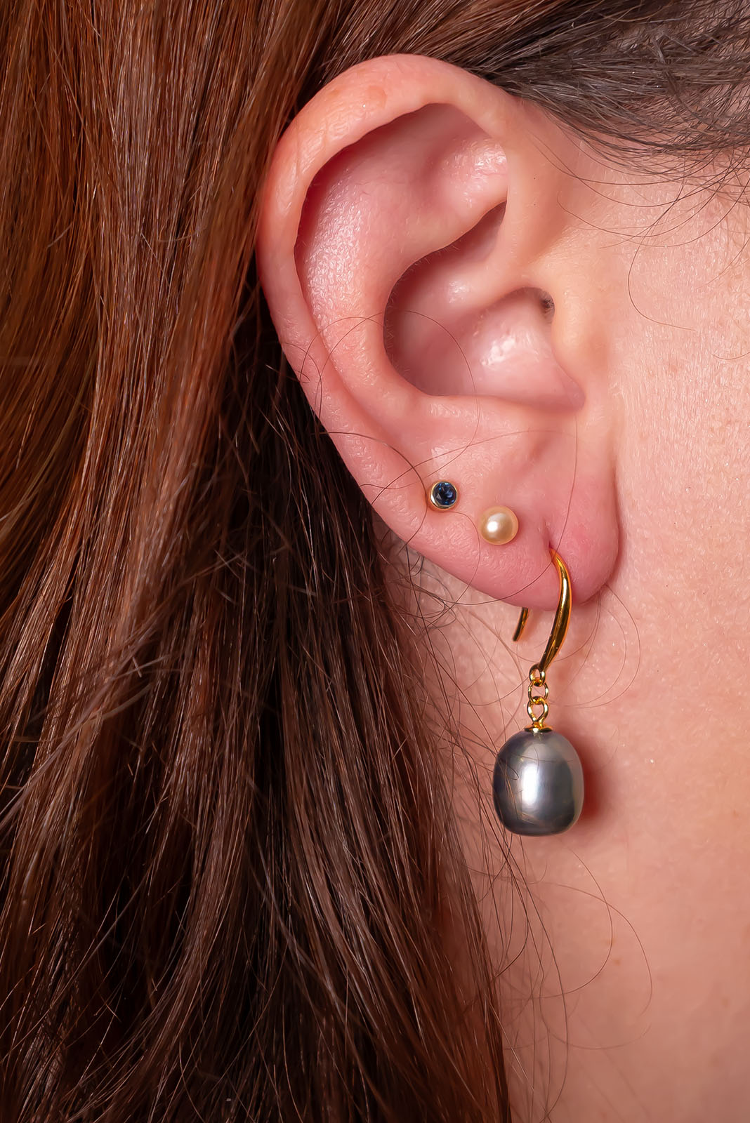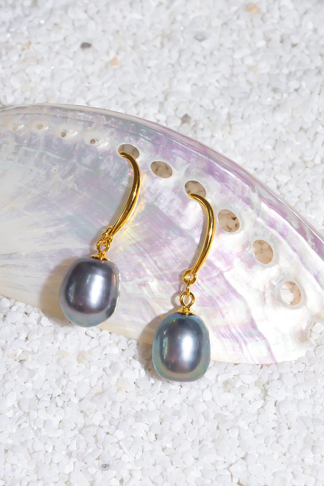 Our gorgeous pearl earrings in softly glowing blue grey are the perfect all day chic style.