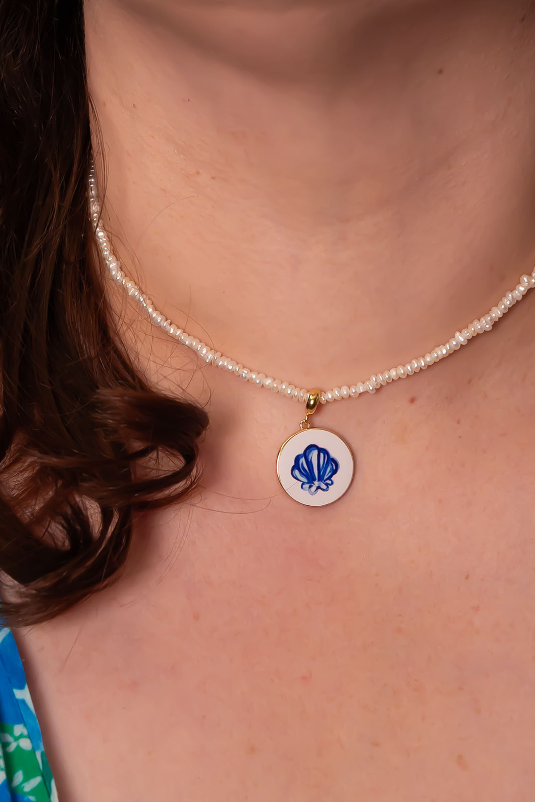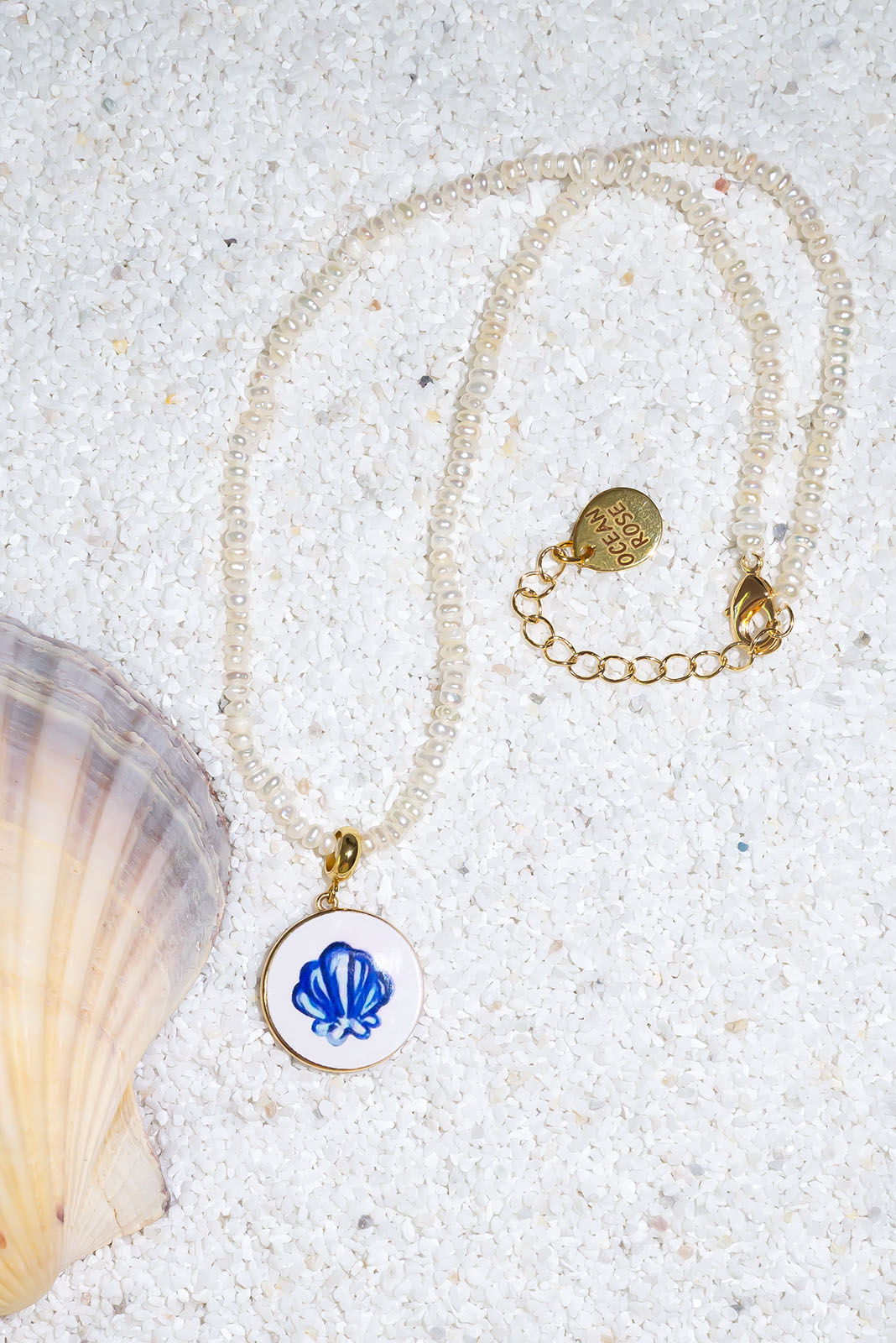 This delicate pearl necklace it easy to layer with other jewelry, the charming enamelled hand painted seashell pendant gives a carefree ocean vibe, its perfect with all your summer cotton dresses. This Australian charm necklace can be worn on its own or stacked with other chains.