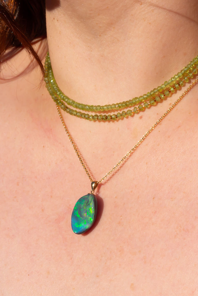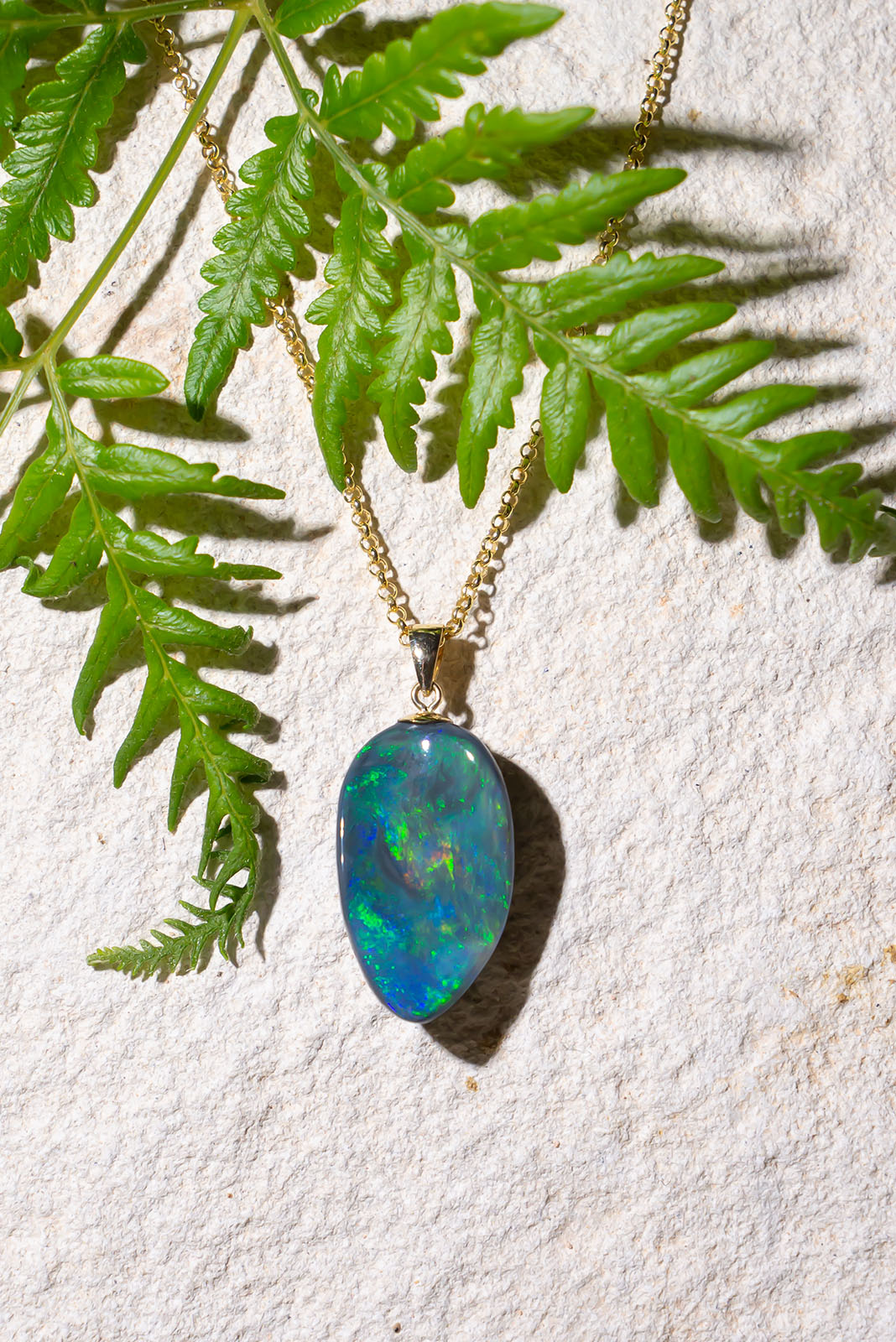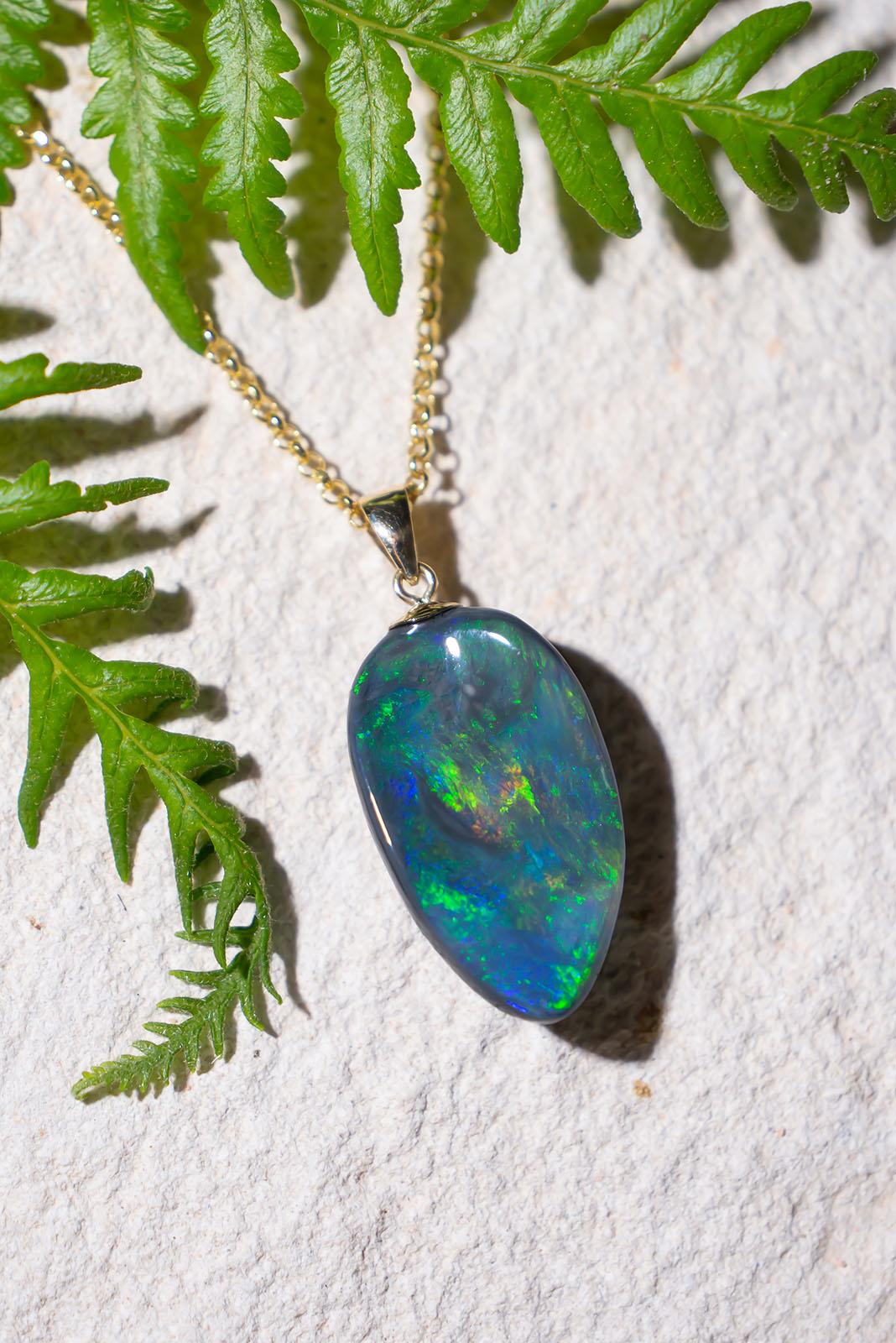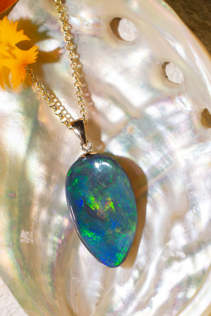 Get lost in magical shimmering swirls of blue, green and aqua fire. This gorgeous Australian opal dances with colour.
