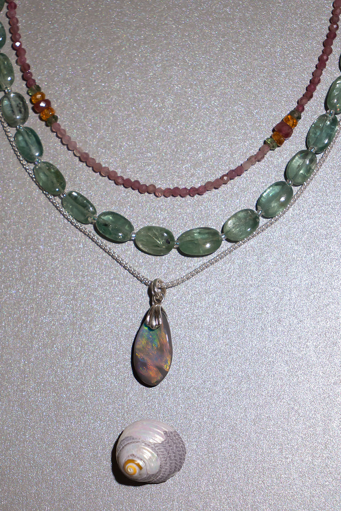 Sparkling rivers of bright green with blue and gold streaks flow across the surface of this Australian Opal pendant. As green and enticing as a gentle summers day.