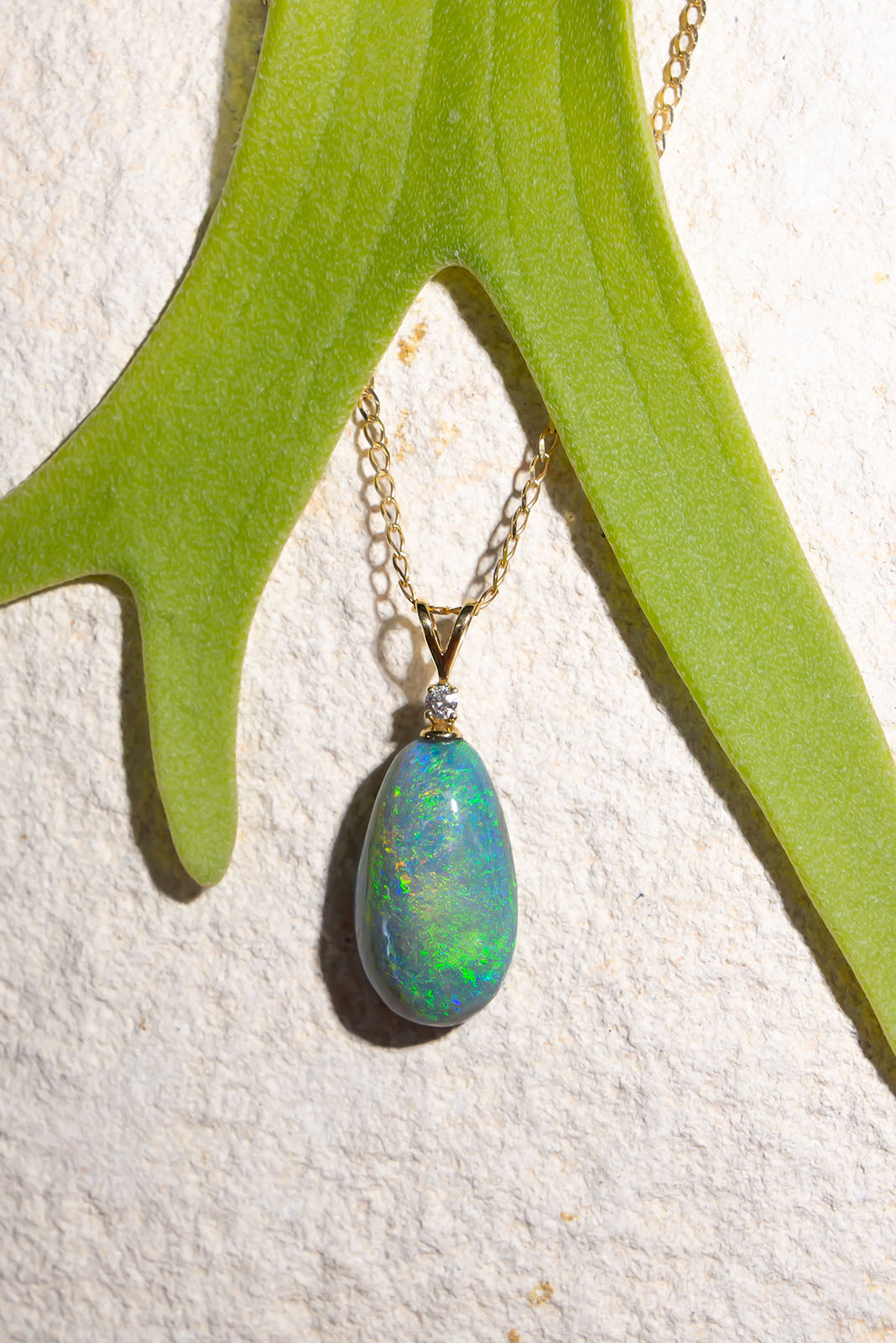 This pendant is the most beautiful semi black crystal Opal, it swirls with intense greens and blue visible at any angle.