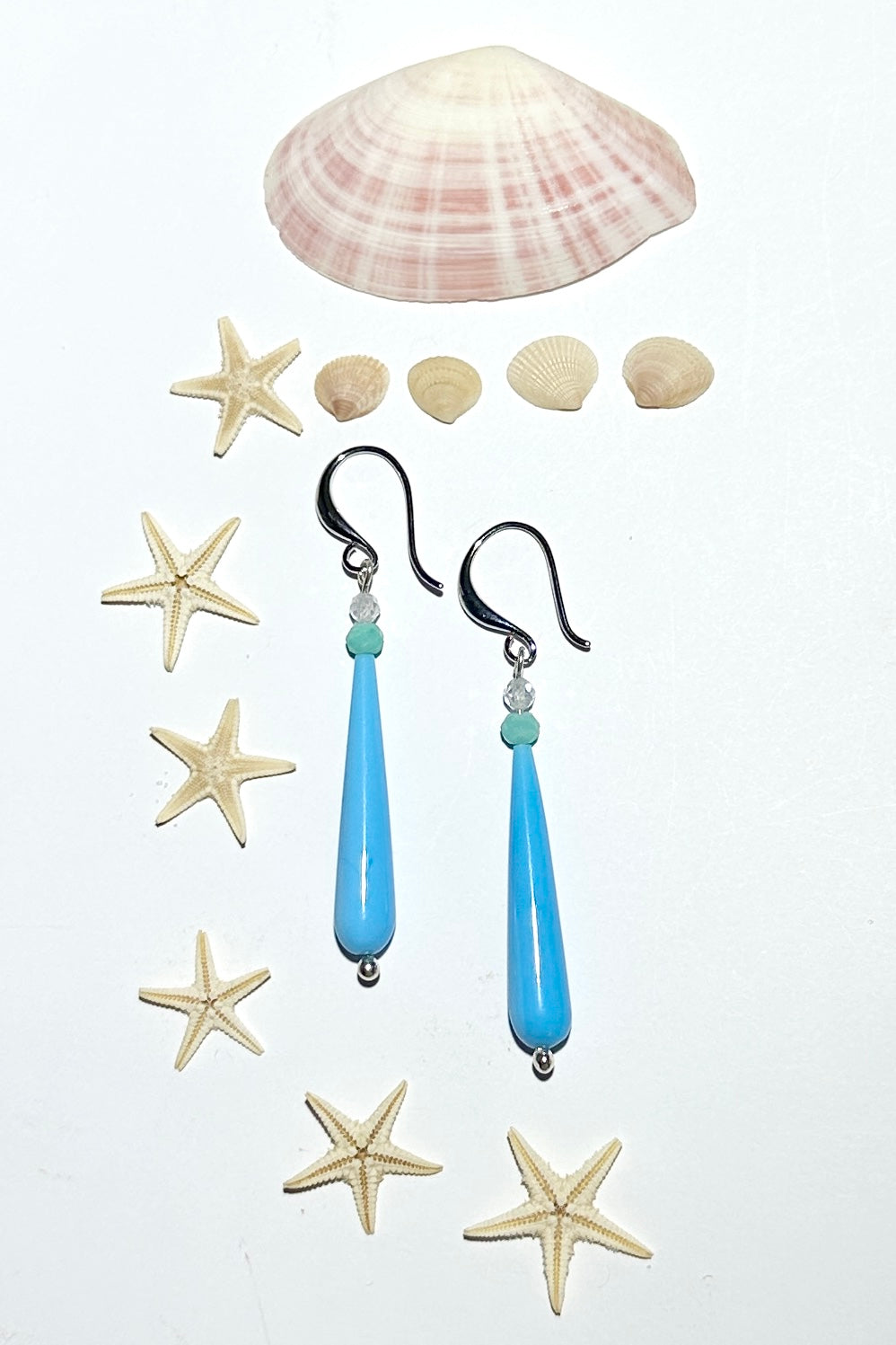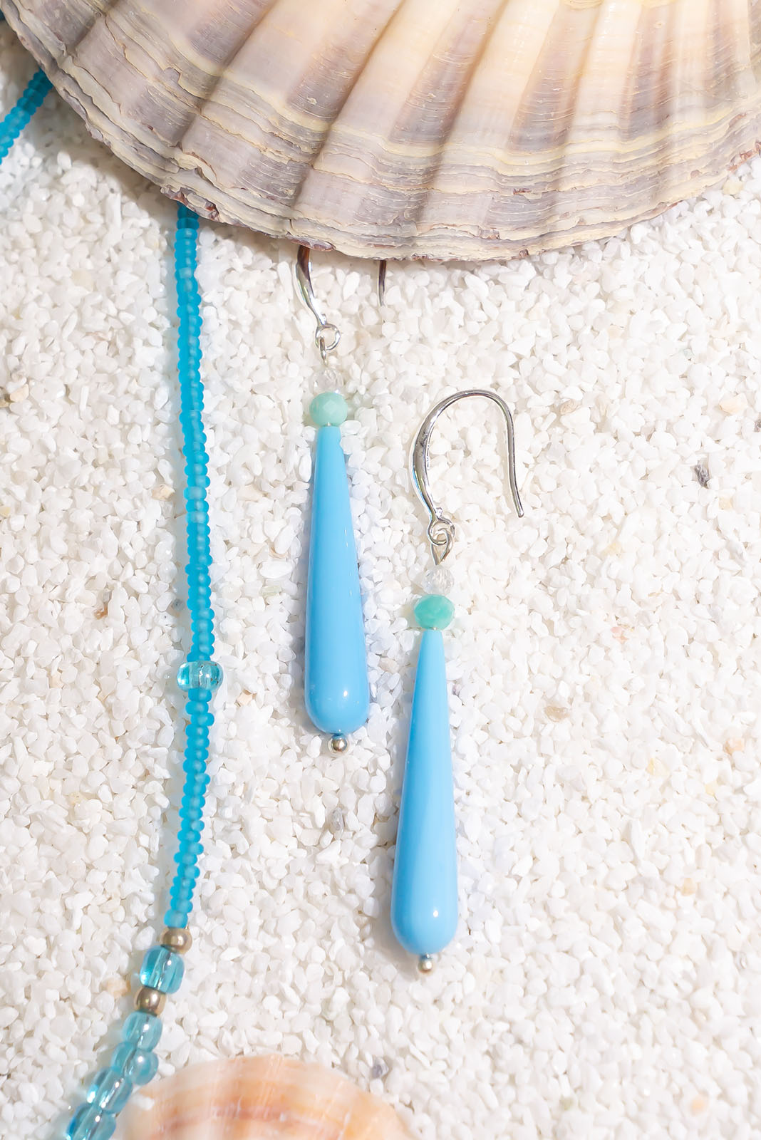 Gorgeous turquoise coloured drop earrings, a perfectly chic swing style to add a pop of colour this summer