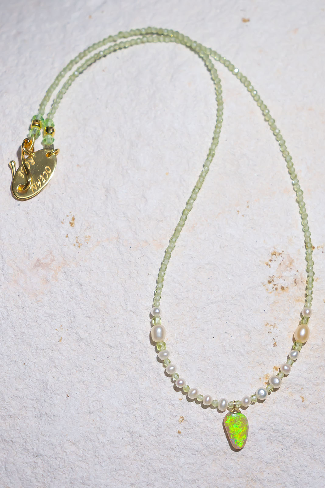 Necklace Australian Opal Crystal Peridot Pearls