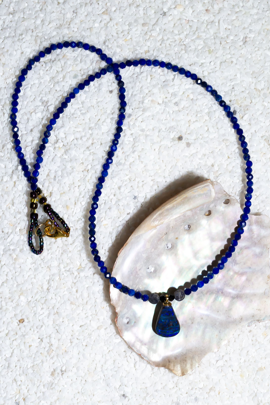 - Necklace is tiny faceted Lapis Lazuli gemstone beads.